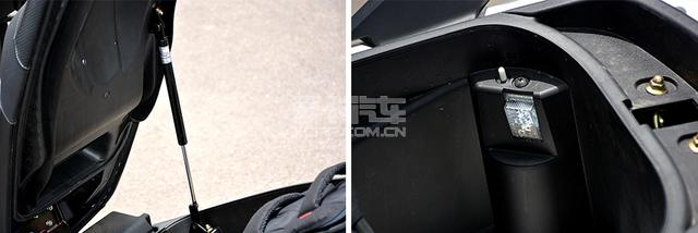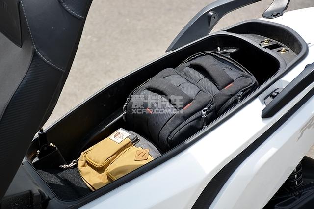 RT3睿途座垫下方的储物空间足够大,可以勉强容纳一顶全盔和一顶3/4头盔,另外它的空间布局也十分合理。