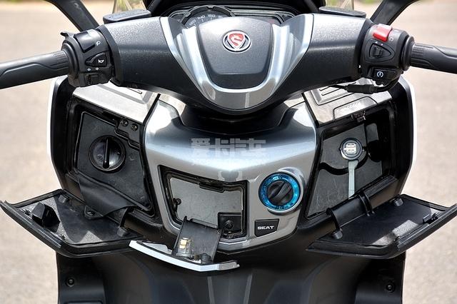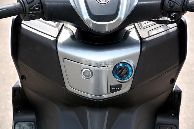 较低的操控把位置为RT3睿途营造出了一种十分轻松的驾驶感受,而车把部分的银色装饰罩与赛科龙Logo也为提升整车的豪华感做出贡献。