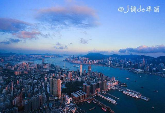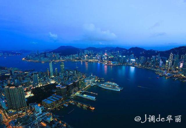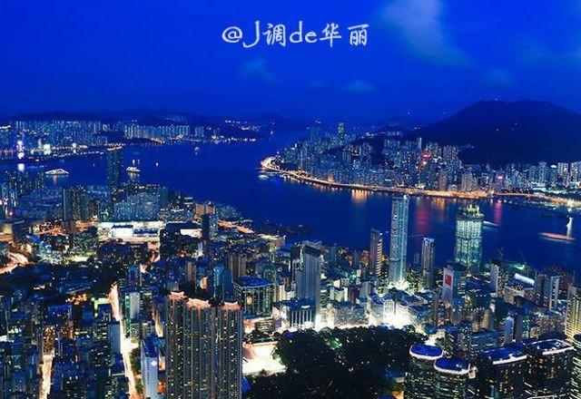 太阳渐渐从地平线上消失,天空从最初的橘黄色过渡到红色、紫红色,最后变成了蓝色,整个过程岂能只用惊艳来形容?日落之后呈现在目前的是夜色下美轮美奂的维多利亚港。