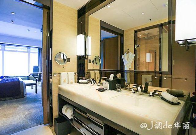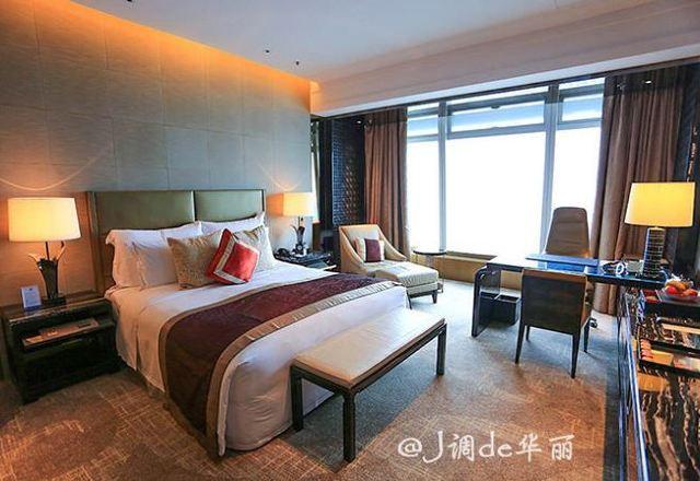 我们住117层客房,最高一层,整个房间的舒适现代又不失浓厚的中国传统风格,床头板是用丝绸和真皮制作的,古典而奢华。