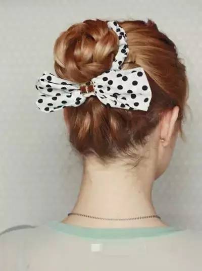 2.头顶的发束挖个洞,把马尾塞入