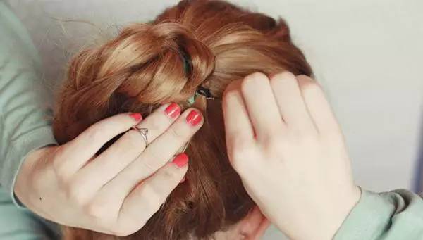 4.绑马尾时绕个圈,将剩馀头发用发夹固定