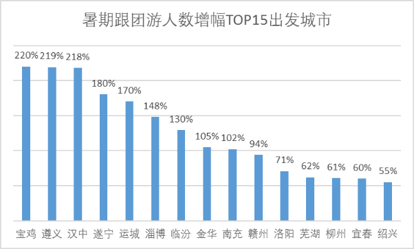 研究发现,二三四线城市客源持续增长,宝鸡、遵义、汉中、遂宁等城市出行人数上涨幅度均超过150%,出行热情空前高涨。