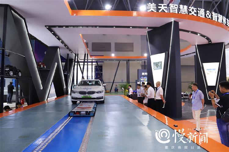 △智博会上,美天科技展台展出的智慧搬车机器人。