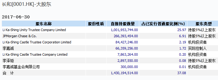 另外李嘉诚还拥有和记香港电讯、汇贤产业、和记港陆、置富产业、TOM集团等18家上市公司。这些公司加起来的总市值超过了港股市场所有公司的总市值的5%。