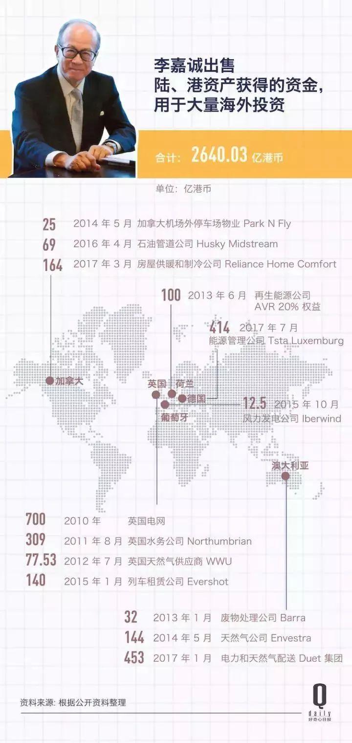但另一面,李嘉诚却在海外开启了“买买买”模式。据统计,李嘉诚这几年用于海外投资的资金已经超过了2600亿港元。