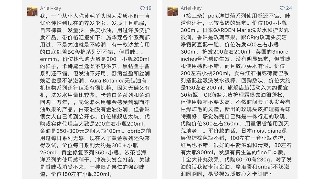 上周我们在公众号发起了《哪些洗发水好用?》的文章,大家留言都非常积极,其中还看到了非常非常认真的留言内容,谢谢这位认真的小姐姐:
