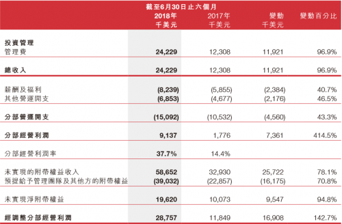 如果计入未实现的净附带权益,则投资管理业务上半年经营利润范围经调整后达2875.7万美元。