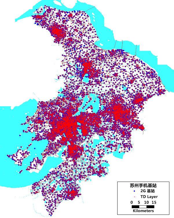 2016年苏州全市域移动基站约5万个,其中2G基站3.06万个、3G基站1.88万个,基站平均密度为10.85个/平方公里;每天的手机用户量900万左右,约2亿条记录,每天数据量超过23G,人均数量37.82条。