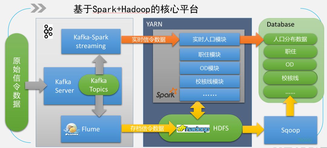 3)业务层主要是实现对于原始手机信令数据的数据清洗、匹配、分析、挖掘,是整个平台系统建设的核心。