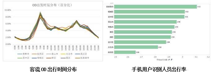 根据手机用户的出行轨迹以及停驻信息,可以判断手机用户的大致的发出地与目的地,以及出发与到达时间,进而分析苏州市人员的出行情况,包括出行时辰、出行频次、空间联系等。