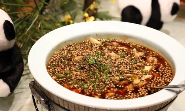 令麻辣靠边站的晚宴真正主角有两个。第一个自然是新春的川茶,入席前,酒店为宾客们准备了代表川菜的竹叶青。在茶艺师炮制下,入口的竹叶青茶香持久,清幽润胃,缓缓将食欲打开。