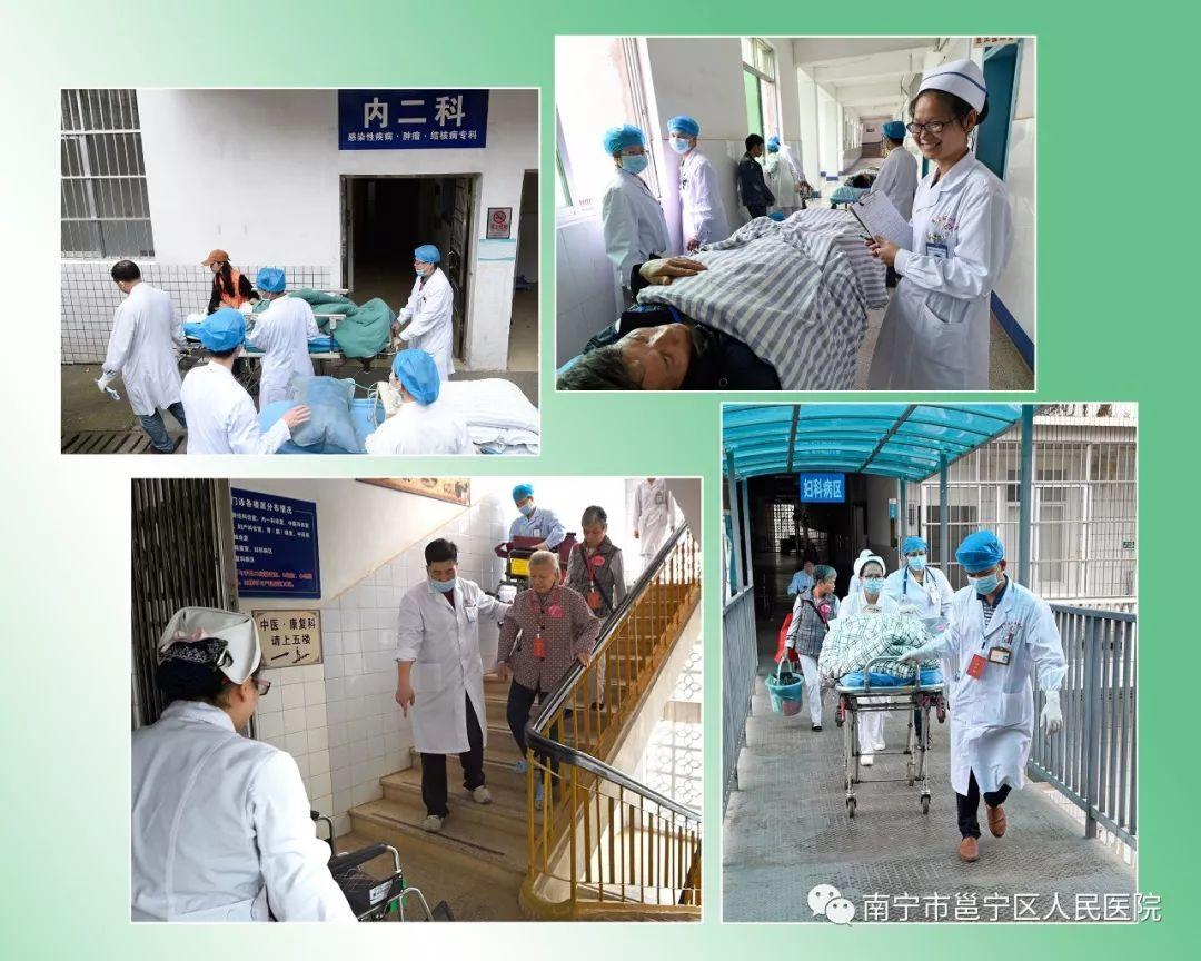 在历时三天的整体搬迁中,得到公安交警及城管等部门大力支持,派出大量警力维护医院治安和确保转运车辆通畅;各卫生院派救护车参与组成本次搬迁强大队伍;由市一医院重症医学科、急诊科专家组成的强大团队参加并指导危重症患者转运,为重症病人安全转运提供强大技术力量保障。整个搬迁过程安全、紧凑、高效、有序,做到搬迁前计划周全,搬迁时快捷有序交接无缝,保证了医疗过程的连续性和安全性,赢得了患者、家属及社会各界广泛好评,充分展现邕宁人医团结协作、无私无畏、优质高效的团队精神。医院完成整体搬迁后,位于蒲庙镇和平三街49号老院3月30日起停诊不再提供医疗服务,位于龙岗新区新邕路的新院区4月1日全面接诊。