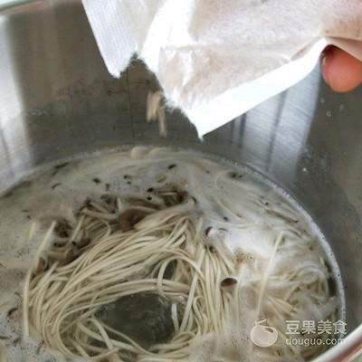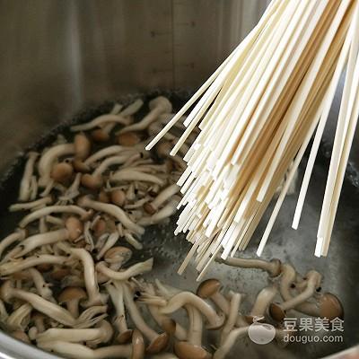 6、水开,加蟹味菇