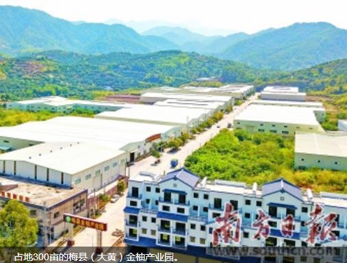 鉴于此,2015年,借着省级现代农业示范区创建契机,梅县区委、区政府及松口镇以900万元财政资金撬动了1亿元社会资本,建成了占地300亩的梅县(大黄)金柚产业园,吸引了28家企业、专业合作社进驻,搭建起集信息化柚果交易、现代自动化柚果仓储于一体的范围化购销平台。