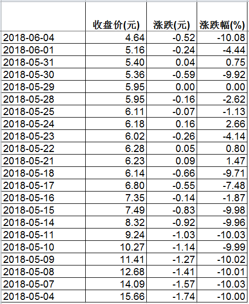 坏消息总是连锁的。5月4日,结束重大财富重组事项的奥瑞德一复牌便迎来跌停板,当天股价跌10%至15.66元。直至5月15日,该股票连续共迎来8个跌停板。6月4日又一个跌停板后,奥瑞德股价已经跌至4.64元/股。