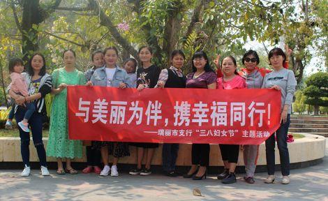 3月8日,瑞丽市支行工会积极参加了由市妇联组织开展以“巾帼心向*党**,扬帆新征程”为主题的三八节系列活动。亲近自然,放松身心,以健美的身姿和良好的精神风貌,热情拥抱新时代、展现新气象、实现新作为。