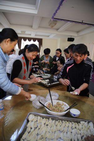芒市支行在“三八节”到来之际,组织员工进行包饺子活动,且别出心裁的把红辣椒放在几个饺子里,吃到包有辣椒的饺子就能获得小礼物。