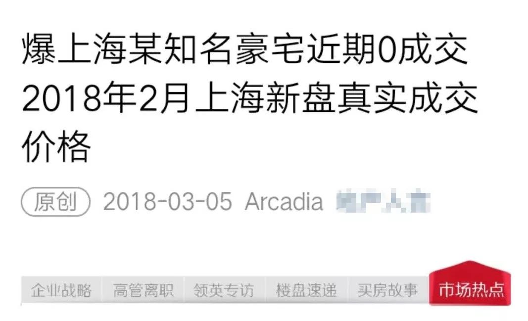 该文章说,在目前楼市成交疲乏的情况下,豪宅这个品类的成交量也跌入冰点,甚至在去年的第四季度,上海非常知名的某豪宅居然出现了0成交。