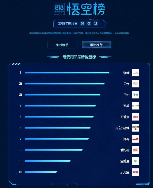 从苏宁悟空榜单的实时数据来看,母婴用品在此次8.8苏宁红孩子的超级拼购中厮杀最为激烈。截至8日晚8点,洛娃作为拼抢“黑马”依旧稳居傍首,但对比中午12时的数据排名,贝亲和子初的名次均有提升,位列第二和第三;贝拉小蜜蜂从原先的第八上升至第六;五羊则从第二跌至第四。