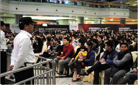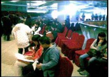 客户等候区:外场等候区摆放了约3000多把休息椅供客户等候,上午9:10即基本坐满。等候区周围用高大展板进行封闭围合,将等候区与签到区、选房区等进行隔离。展板内容均为项目卖点。另外在每隔十分钟舞台区进行电脑抽奖,按照客户签到后领取的抽*券奖**号码抽取1800份礼品。另外还在每把座椅上放置有矿泉水,入口处提供面包由客户自行领取。