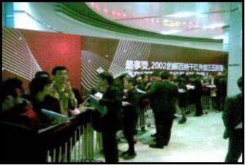 签到区采用创新S形通道排队,快捷,平均分布人流: