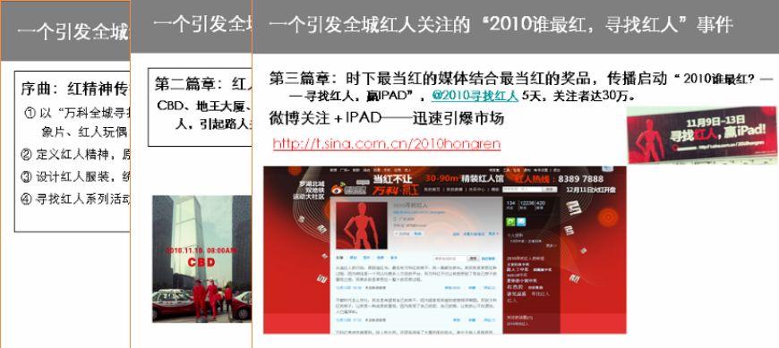 以“万科全城寻找红人”为主题,在金光华广场、田贝新一佳、翠竹万佳进行巡展,在CBD、地王大厦、万象城、东门、火车站、金光华广场、国贸、cocopark等地连续出现红人,引起路人关注,拍照、视频,迅速在现实、网络中传播。