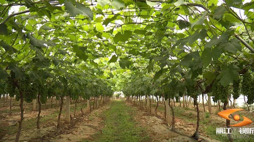 在程海湖畔的丽海阳光新型农业科技有限公司的葡萄种植基地,连片的大棚葡萄硕果累累,密密麻麻地挂在藤枝上。从这个月底,这里的近两千亩葡萄将陆续进入采摘期。与褚柑主打晚熟牌不一样,这里的葡萄主要打的是早熟牌。负责人唐冬金告诉我们,因为程海边的气候条件较好,葡萄上市时间比江浙一带要提前两个月,借助公司强大的销售网络,再加上早熟的优势,他们的葡萄可以销往全国各地,卖上更好的价钱。