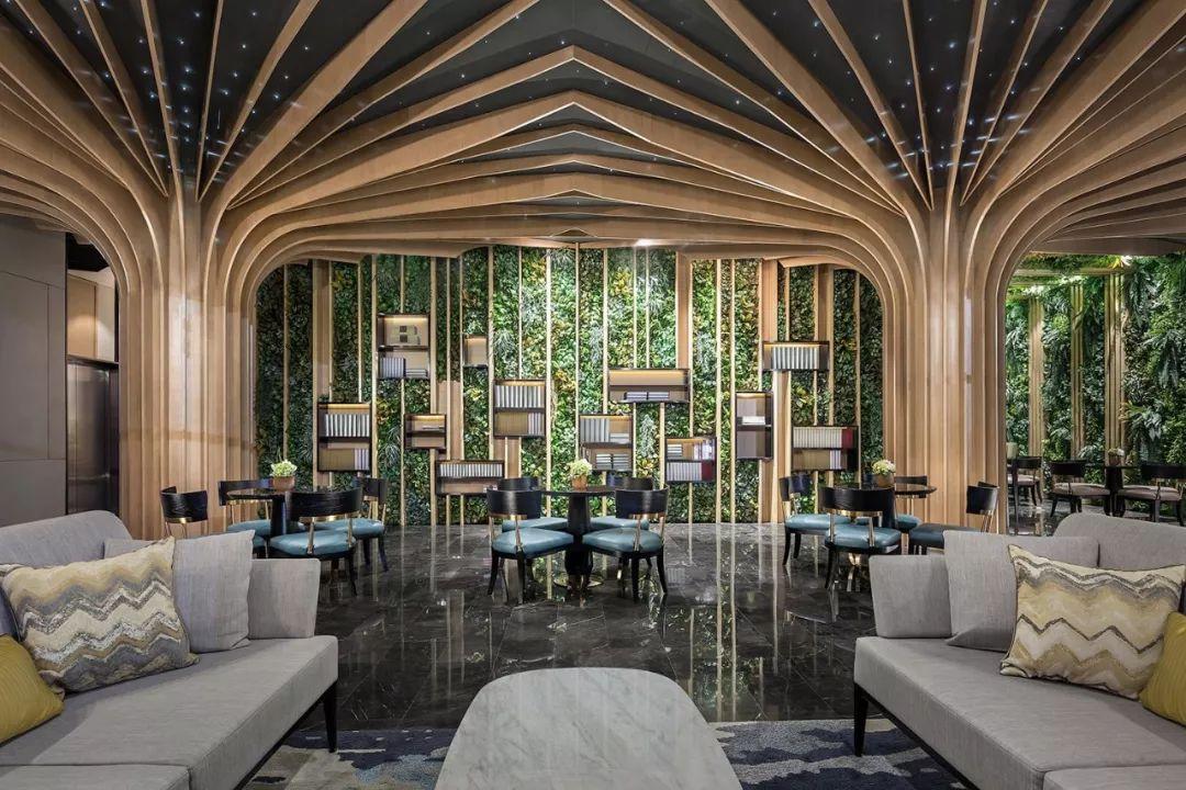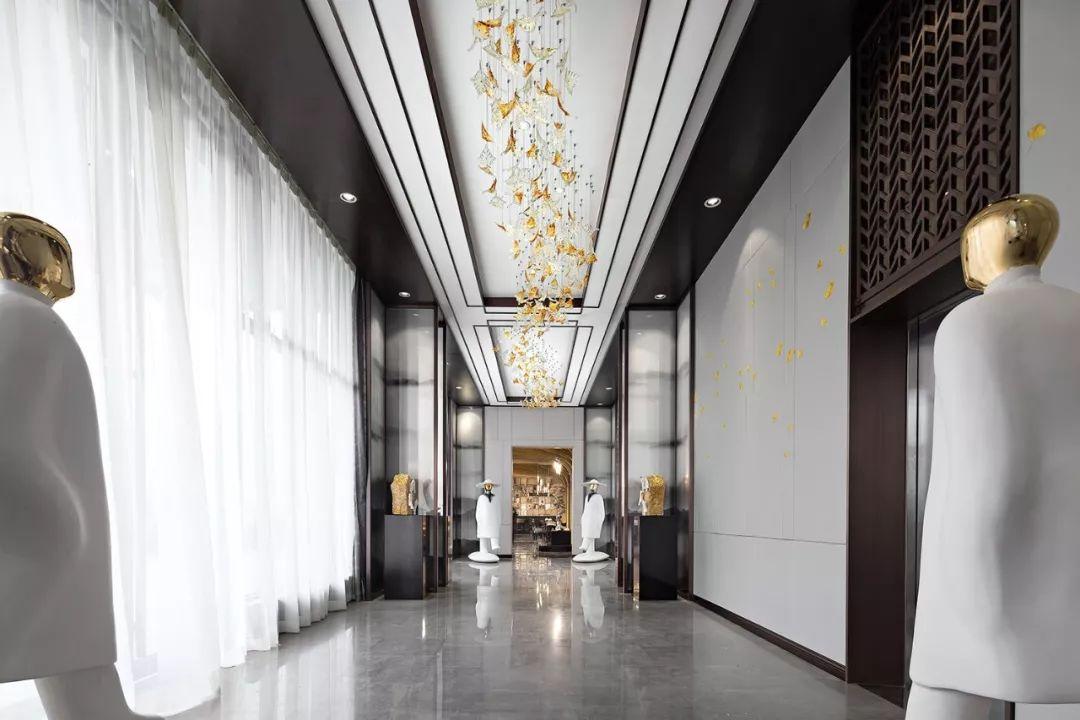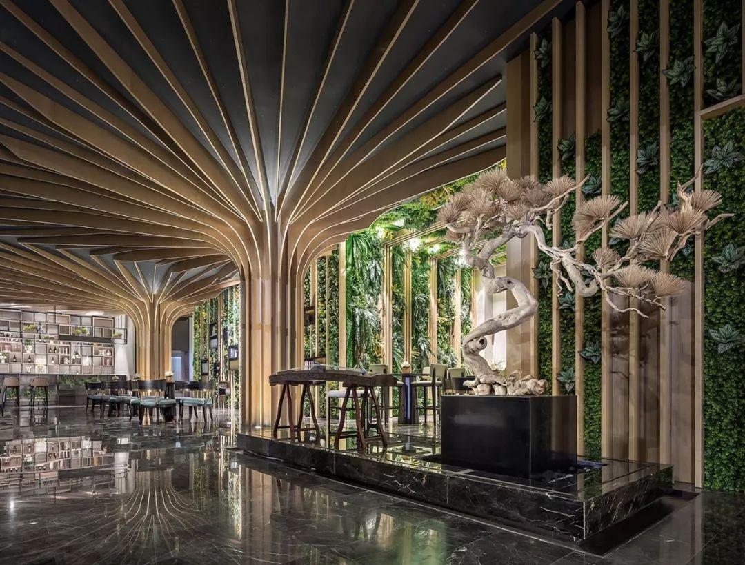 A:这个项目的话它是有点偏新亚洲,新亚洲的这么一个感觉。因为整体外建筑也是比较趋向于这么一个这么感受的,然后在这种类型的一种空间里面,在这个新东方的一个基础上,都有一种中式的感觉。因为其实我们说新东方这种感觉的话,其实还是比较讲求借景,借景抒发情怀。其实这种形式的话就是你刚讲到的这一些,虚实结合,屏风结合这种形式,从手法上面来讲更多的是,我希望他是在一个空间的转换,能给出一种虚实,穿插,或者带来一个突破的这种感受的。这个可能延展到一些设计细节,一种做法。当然每个空间的这个形体不一样,有不同的处理形式,但是其实最终达到的还是应该是一个视觉上(的感受),如果我们追求更加精工一些的话,应该是更好的一个心理感受,这么一个事情。