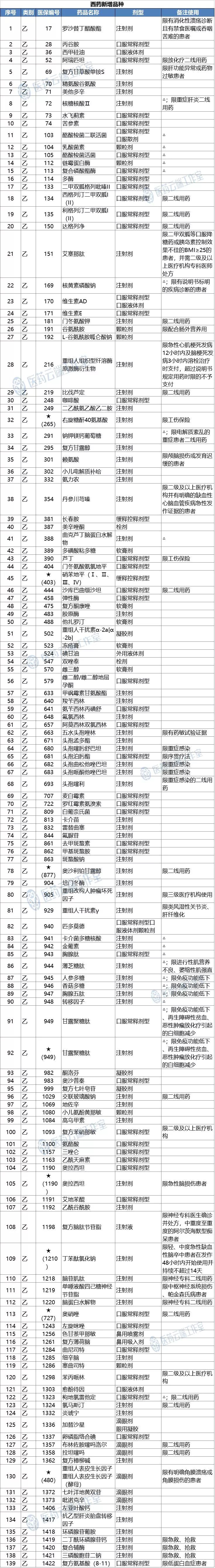 | 402 | 虫草菌发酵制剂 | ◇;△;限器官移植抗排异、肾功能衰竭及肺纤维化 |